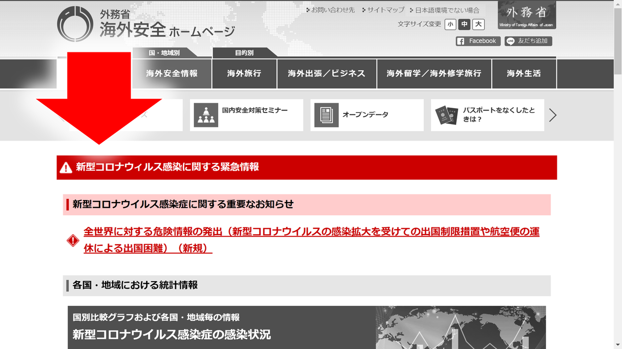 ●本日3月29日現在、外務省が全世界に対して「不要不急の渡航自粛」を要請している状況