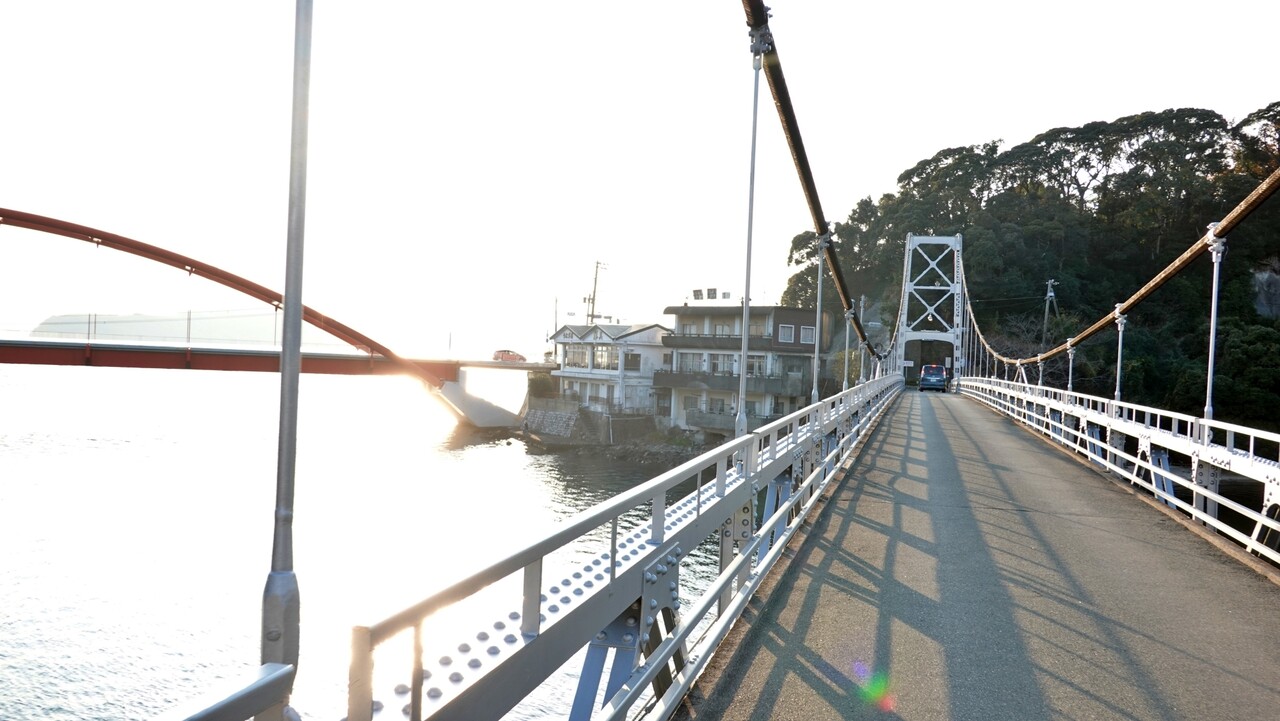 ●「猪鼻湖」(入江)に向かう水路にかかる橋に差し掛かった