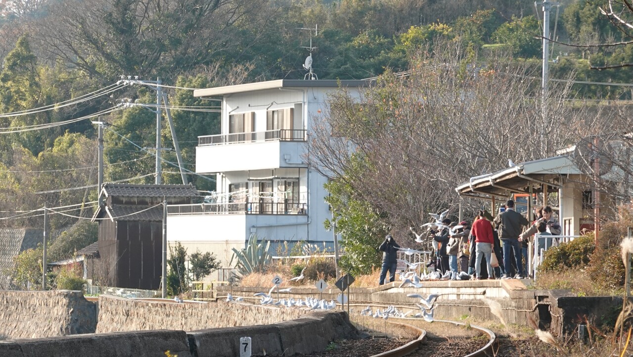 ウミネコの餌場になっているローカル線駅脇を通過して・・・