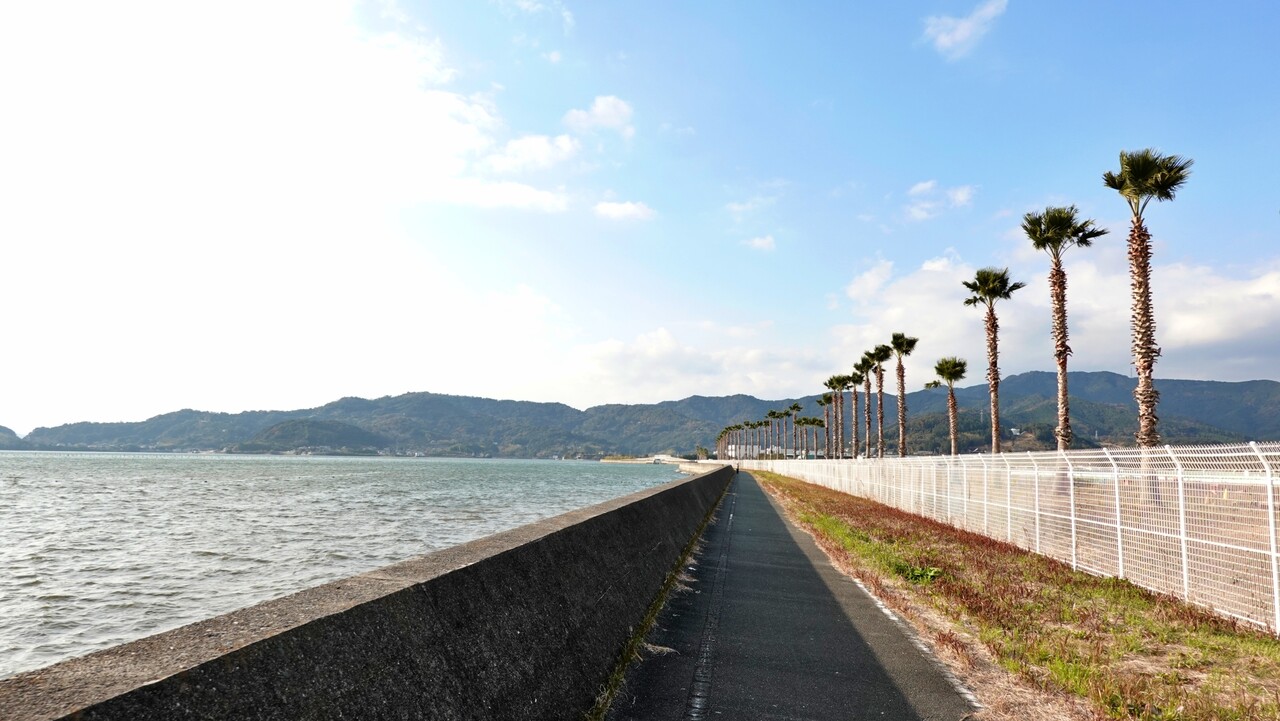 ここからまっすぐの道は、浜名湖北西側の入江である「猪鼻湖」を回る道。